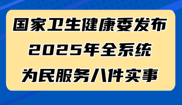 1月5日—6日,2026年全国卫生健康工作会议在京召开。会上,国家卫生健康委确定2026年全系统为民服务十件实事。会议指出,2025年实施的八件为民服务实事受到群众欢迎,202......