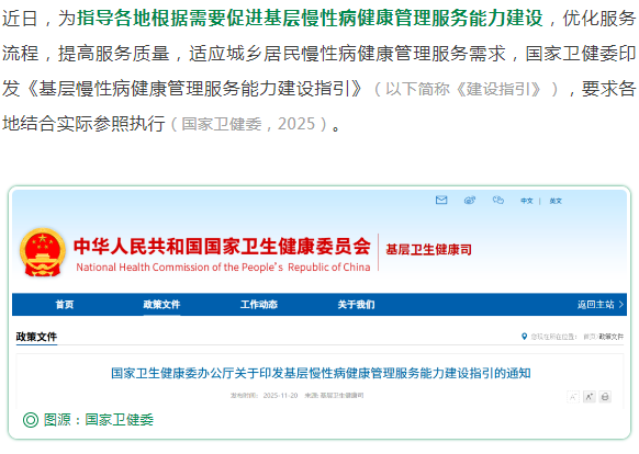 10月29日,国家卫生健康委会官网公布了该委同国家发展改革委、财政部等六部门此前联合印发的《关于加强基层慢性病健康管理服务的指导意见》(国卫基层发〔2025〕15号,以下简称《......
